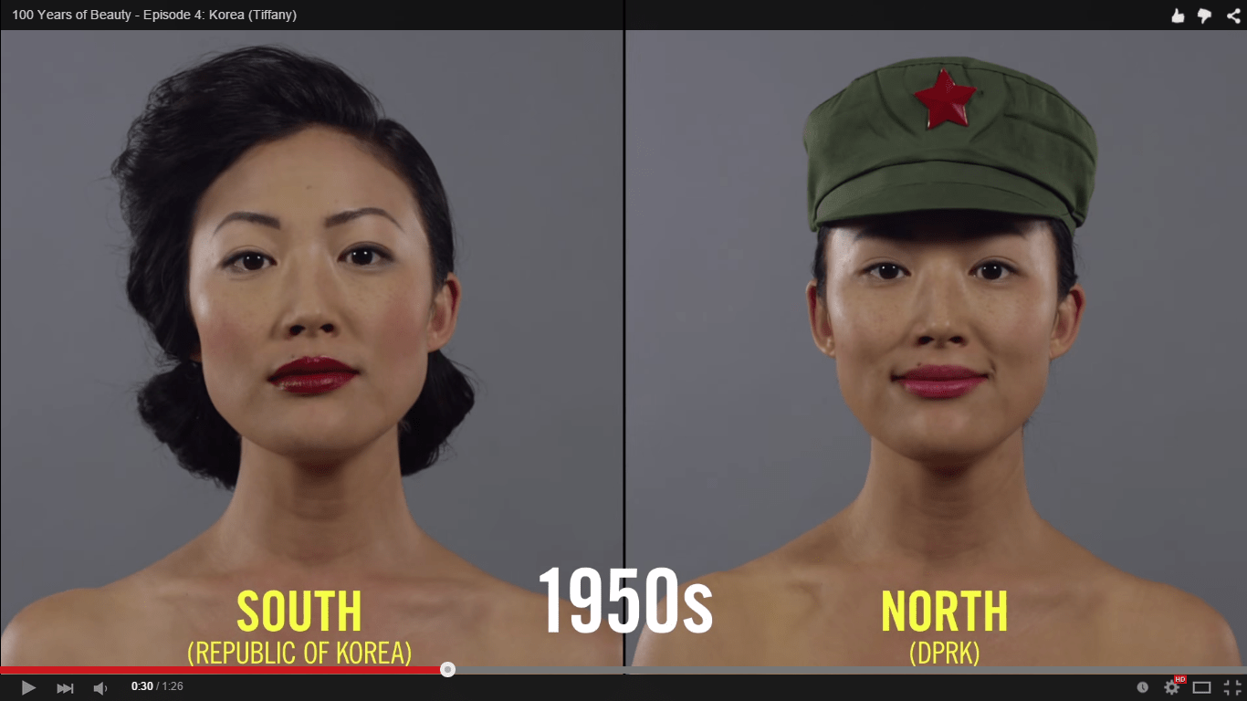 Cut Video's latest "100 Years of Beauty" video puts North and South Korean fashions side by side, exploring how beauty standards changed after the country split in two.