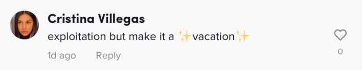 Some people appreciated the TikTok, with several folks saying, "I’m doing this." However, the seemingly exploitative nature of the video—finding every way to save money while traveling in a country with a high exchange rate for the U.S. dollar—has rankled with some viewers. In particular, TikToker @notwildlin stitched the video and called Boro out.