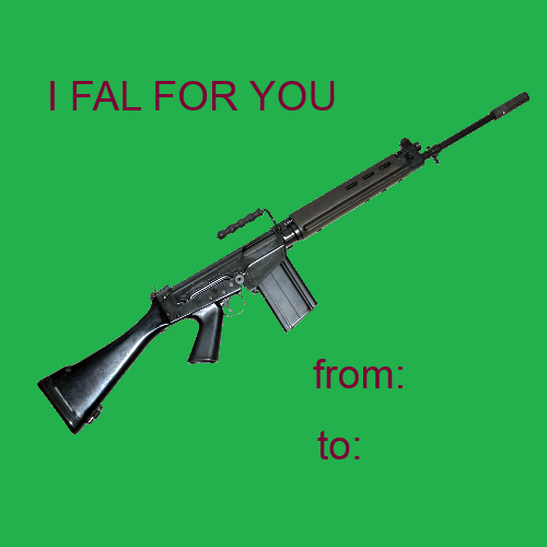 4chan’s weapons board /k/, where people share photos of their firearms and debate gun laws, has whipped up some hilarious cards to share on the day of love.