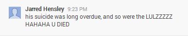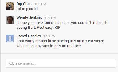 "Anyone who commits suicide deserved to be bullied," one user wrote. "Never have i came across anyone who was being bullied for 'no reason.' Honestly if you can't man the fuck up to being made fun of for decisions that YOU made then you shouldn't continue on in life."