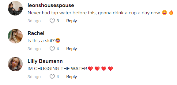 "Damn, tap water never helped yeet my three or the one I had surgically removed," wrote one. "Darn."