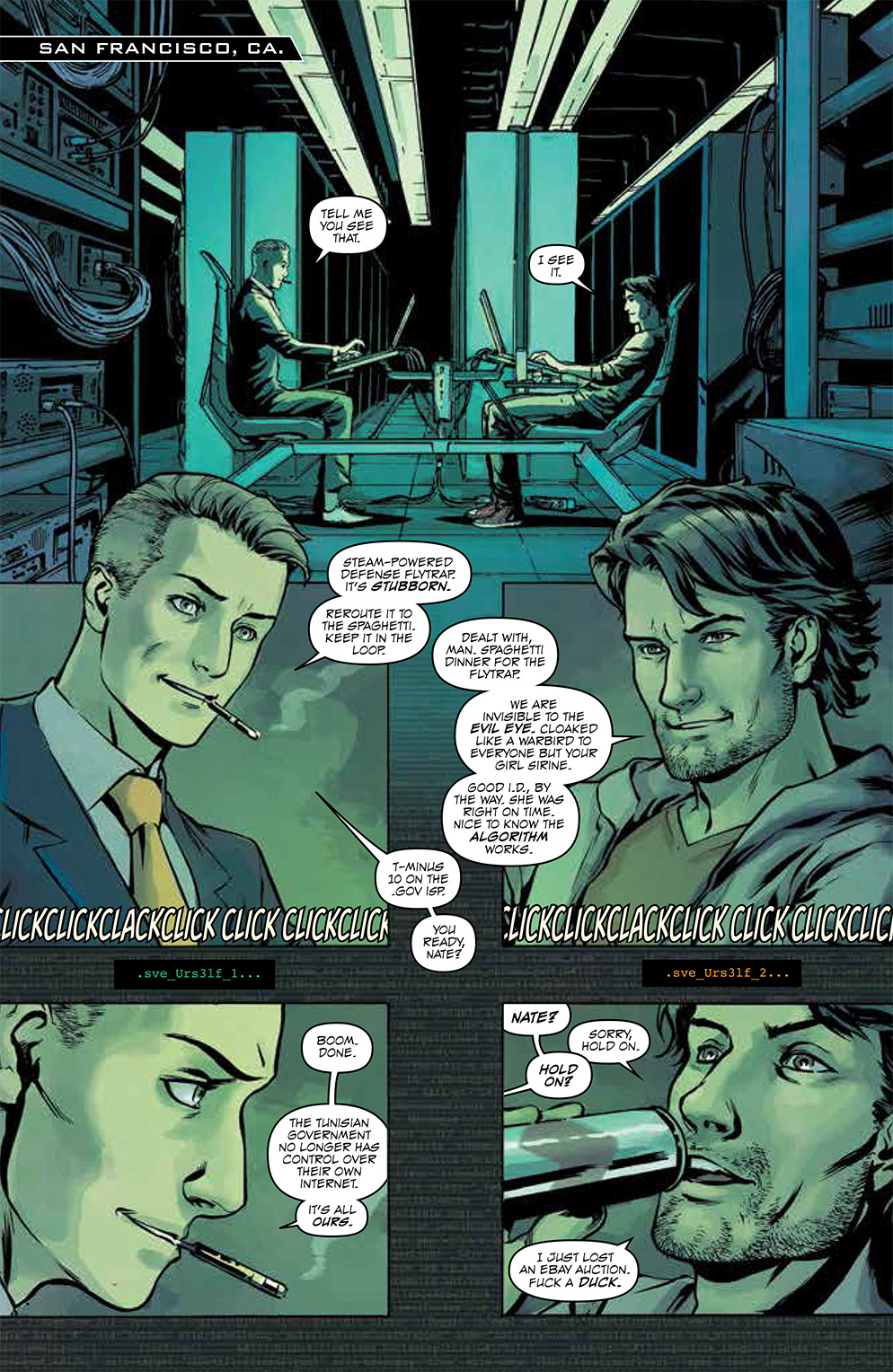 But making it realistic was another challenge. The art, layout, and coloring is striking, but the storyline is a fairly Hollywood version of what the culture entails and mostly stays away from discussing hacking’s greyer areas, like the fates that befell Jeremy Hammond, Barrett Brown, and Aaron Swartz. It’s more realistic as a way of explaining hacking to mainstream culture and how it can be a forum for positive social change.