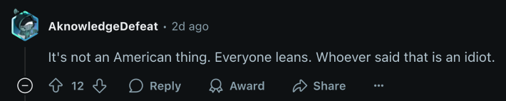 “It’s not an American thing. Everyone leans. Whoever said that is an idiot,” said @AknowledgeDefeat.