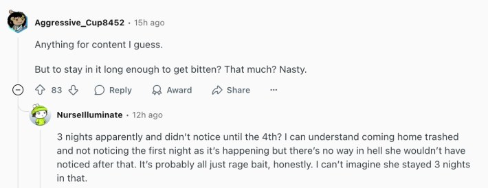 A follow-up video shows how the bite situation got even worse. The TikToker was absolutely covered in bug bites across her arms, legs, torso, and even her face.