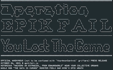 In a press release titled "You Lost The Game," the hacktivist group announced on Monday part three of what it has dubbed "Operation EPIK FAIL."