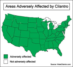 Lest you think the anti-cilantro league has not infiltrated the very fabric of our society, spreading their poisonous denunciations wherever they may take root, we should mention that they’re also on Facebook. The page provides up-to-the-minute coverage of cilantro disasters as well as joking asides. “My phone just tried to auto-correct cilantro to chlamydia,” one member noted recently, prompting the reply: “that's why they call it a Smart Phone!”