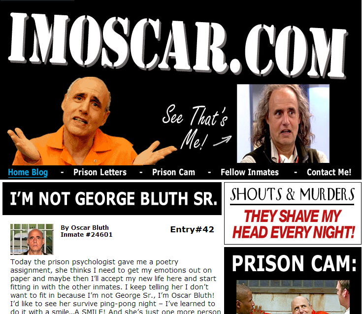 When Oscar Bluth was wrongly imprisoned in his twin brother's stead, he set up a site to campaign for his release. The site is gone, replaced by a placeholder owned by a private entity. However, someone set up a mirror of the site on Tumblr, called imstilloscar.com.