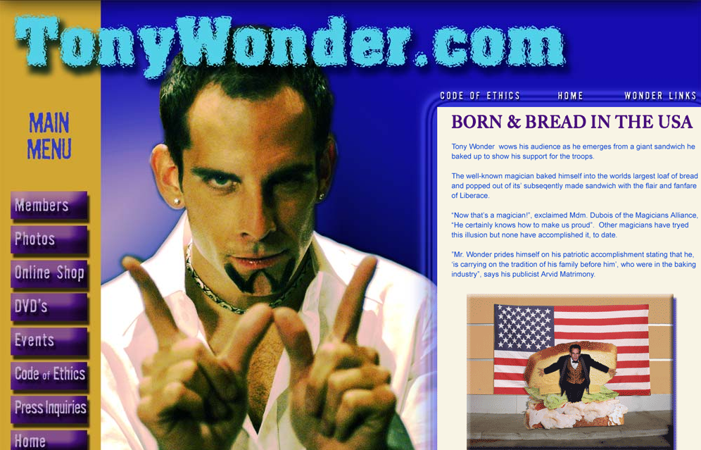 Ben Stiller's character Tony Wonder is almost as ridiculous as Gob when it comes to his magic act. His site appeared in the show in a gag mocking Fox's constant promotion of Family Guy during episodes. It existed in real life and while Fox still owns the domain, it too does not hold any content.