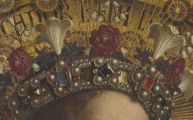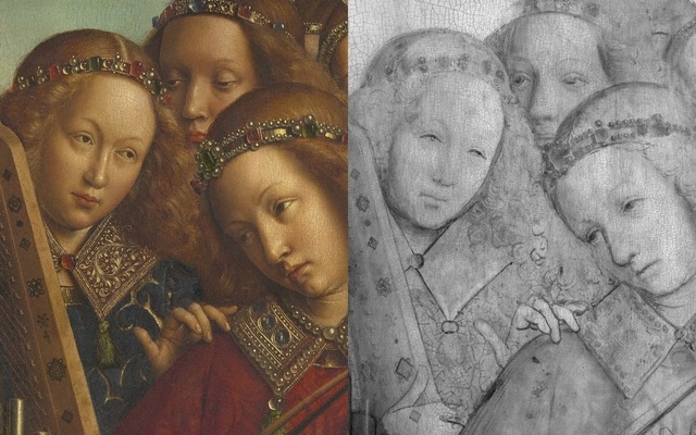 Art credits: All images Hubert and Jan van Eyck. St. John the Baptist Enthroned (detail), from the Ghent Altarpiece, assembly of digital macrophotographs, image from the website Closer to Van Eyck: Rediscovering the Ghent; The Ghent Altarpiece Closed, overview of the closed altarpiece, completed 1432, oil on panel, Saint Bavo Cathedral, © Lukas - Art in Flanders; Virgin Enthroned (detail), from the Ghent Altarpiece, assembly of digital macrophotographs, oil on panel, image from the website Closer to Van Eyck: Rediscovering the Ghent Altarpiece; Angel Musicians (detail), from the Ghent Altarpiece, assembly of digital macrophotographs (left) and assembly of digital infrared reflectograms (right), oil on panel, image from the website Closer to Van Eyck: Rediscovering the Ghent Altarpiece.