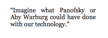 The power of our computers to store massive amounts of information and then order and reorder it in a near-infinite number of ways should be producing new paradigms in art historical research. Imagine what Panofsky or Aby Warburg could have done with our technology.