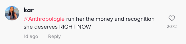 Many commenters tagged Anthropologie's TikTok account in the comments, urging the company to give Weaver credit and pay her for her intellectual property.