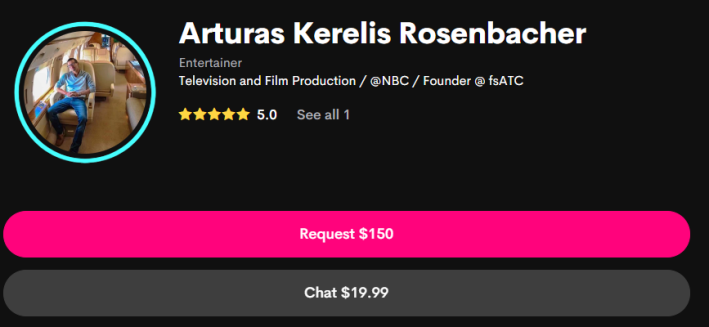 For all his alleged faults, Kerelis is fascinating, a fact he seems aware of. For $150 you can purchase a Cameo of him. If you just want to chat, that'll be $19.99.