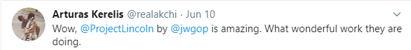 It does seem an interesting coincidence that on June 10, the very same day that the Lincoln Project recorded the $250,000 donation from Arturas Kerelis, founder of FSATC and resident of Chicago, the Twitter account of one Arturas Kerelis tweeted praise for the project.