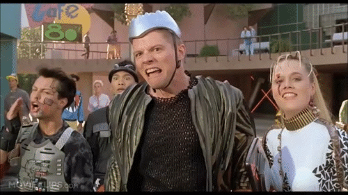 The clothing styles in Back to the Future Part II suggest that we are all going to be walking around with silver spaghetti strainers on our heads, colorful face tattoos, and some sort of CPU chest protector.