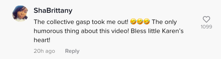 Another viewer said, "The gasp from the entire store! Means the bystanders knew she was wrong as two left feet!"