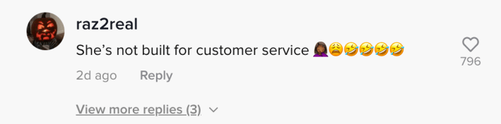 Viewers were shocked at the employee's behavior and comments. Some said she simply wasn't built for customer service. Others called out her attitude and excuse for refusing to greet the TikToker.
