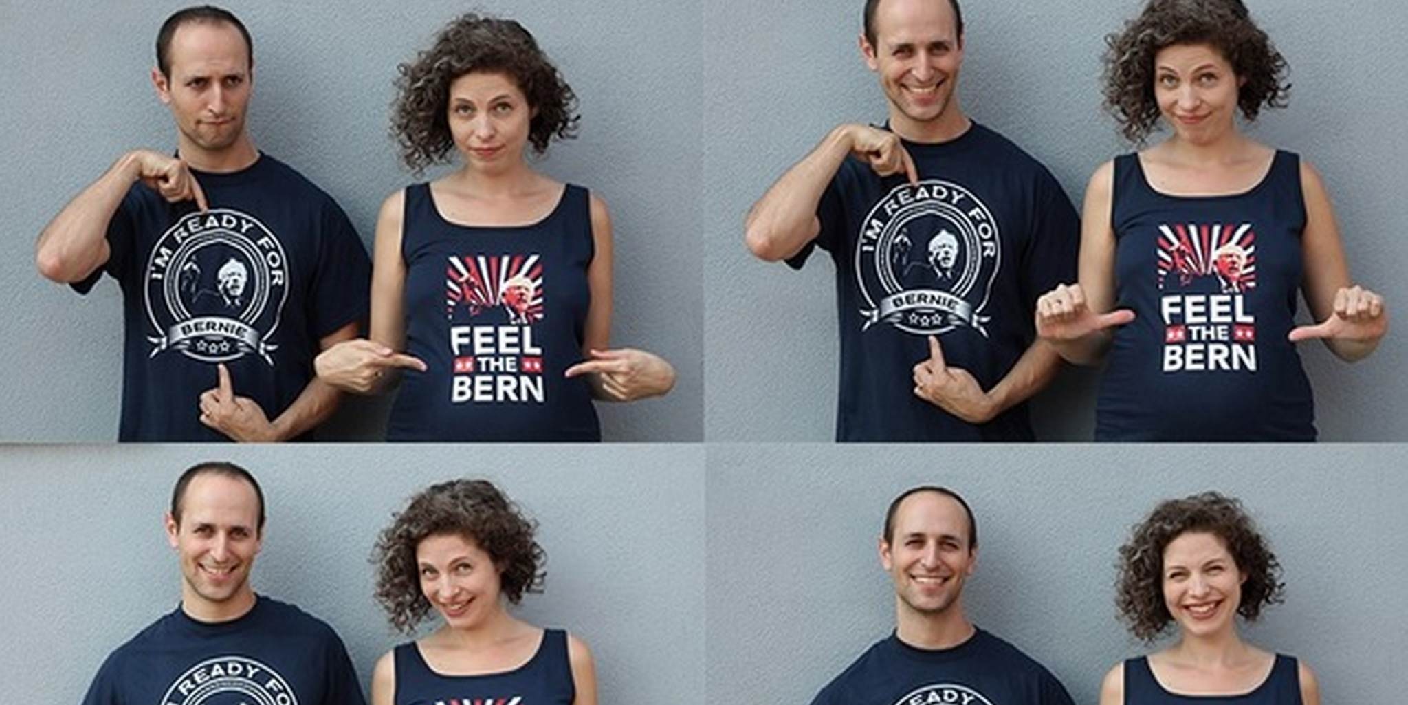The first-time parents were excited to announce that they were expecting. But rather than employing the usual tactics—a sonogram photo, a picture of a bun in an oven—the Hoboken, New Jersey couple combined the life-changing news with a message of support for their favorite presidential frontrunner, Bernie Sanders.
