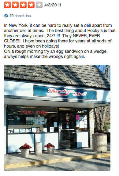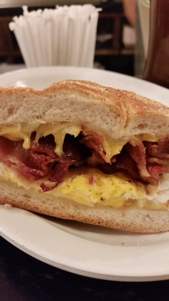 OK, so this one is a bit of a schlep. Also, why does the guy at the counter call a submarine sandwich a “wedge”? But for a small extra charge, the restaurant will top your B.E.C. with a patty of hash browns. This is a hack you can occasionally use at delis, but Rocky’s actually puts it on the menu, meaning they know exactly how it’s done. If the goal of a good B.E.C. is to take a complete breakfast on the go, topping the sandwich off with fried potatoes takes the dish to its logical conclusion.
