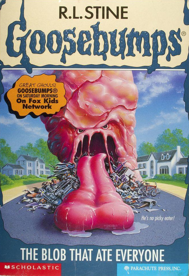 This is one of the later volumes in the original Goosebumps series, at number 55 in the lineup. It’s also one that gets amusingly meta for R.L. Stine. Zackie Beauchamp is an aspiring horror writer who pens a story about a giant blob monster attacking him and his friend, Alex. Later, while exploring an abandoned shopping center, Zackie finds a typewriter he can use to type his stories. Once home, he discovered the typewriter has a blue glow, and what he writes becomes horrifyingly real.