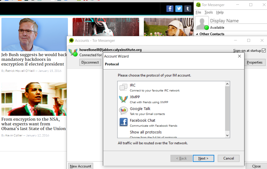 Decades after it was invented, instant messaging remains extremely popular. Tor’s newest tool, the Tor Messenger, provides the most secure way yet to protect your IMs from unwanted readers. With this free software, you can talk over Google Talk, Facebook Chat, and other mediums with Off-the-Record encryption protection.