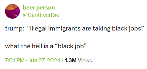 “Black jobs” is something that tumbled out of the wild mind of former President and current candidate Donald Trump on the debate stage on June 27 while he was trying to attack Biden on the immigration issue.