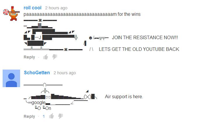Over the past 48 hours, YouTubers have blanketed the comments sections of some of the Internet’s biggest videos with ASCII art of a tank and a man hoisting his arm up in the air.