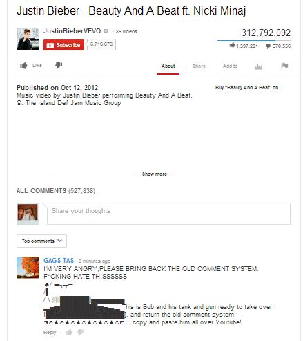 So far we’ve seen the ASCII art in the comment sections of videos from Justin Bieber, Psy, and Lady Gaga. (Click to enlarge.)