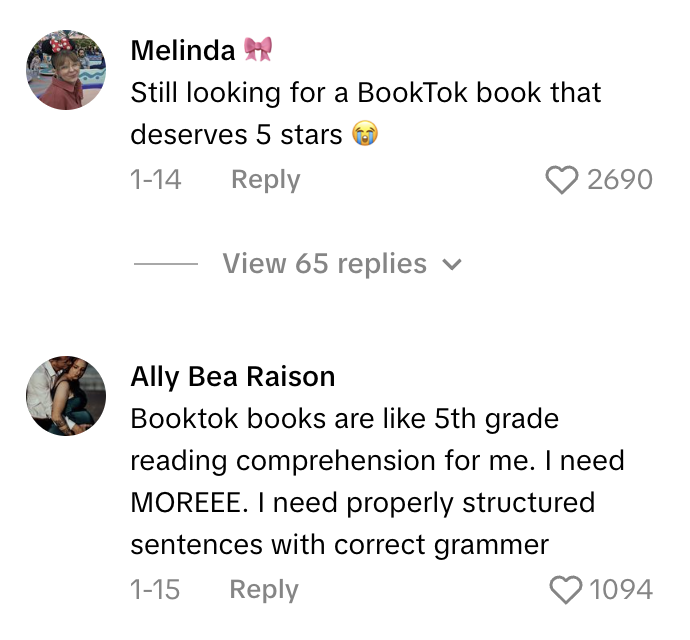 However, there were commenters who strongly disagreed with the creator, with a fifth writing: "Write your own book and see how people respond before you have ago at everyone else, books are subjective, what you don’t like might be someone else’s favourite book your entitled to your opinion but if you don’t like BookTok books, don’t read them."