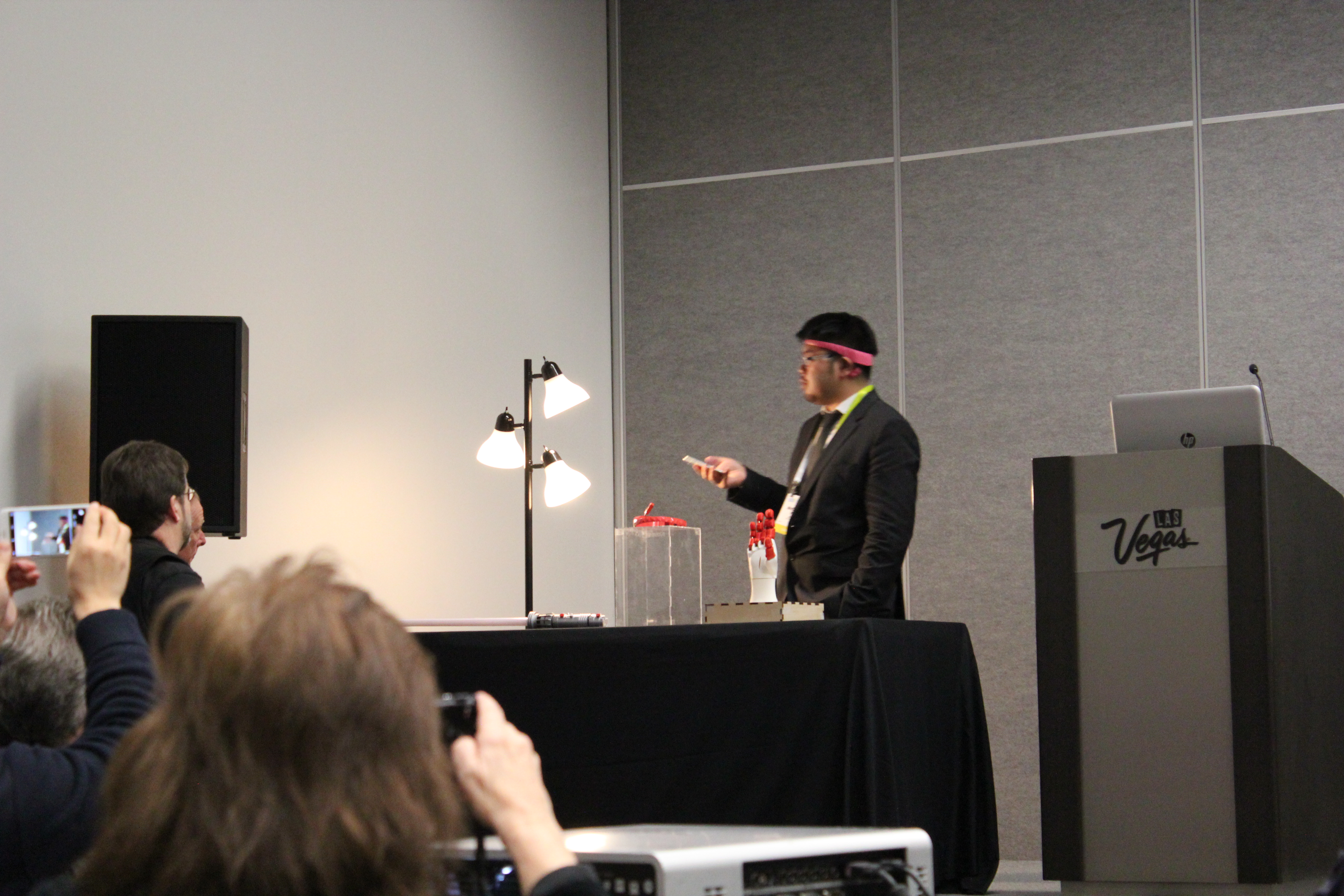 After Han abandoned the demonstration, setting the Focus 1 down on the table, and walking away, the fingers on the prosthetic hand began to move, interrupting and distracting from the company spokesperson's attempt to rehash details about the device.