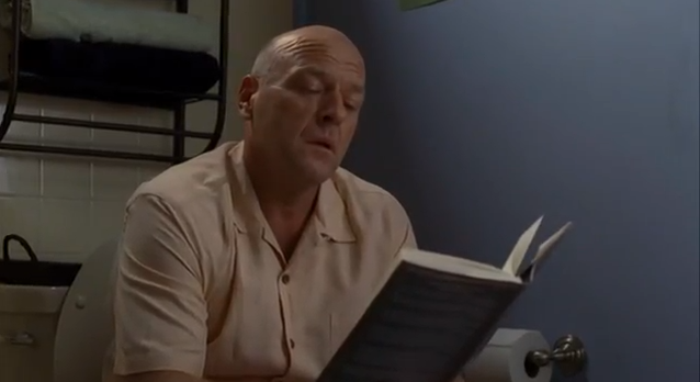 Tumblr site Hank Takes a Shit took that very question and made Hank’s eureka moment into a meme, as he came to other realizations in the bathroom in cleverly cut YouTube videos, which combine the final scene in the Breaking Bad mid-season finale with plot twists from some famous films like The Usual Suspects, Soylent Green and Citizen Kane.