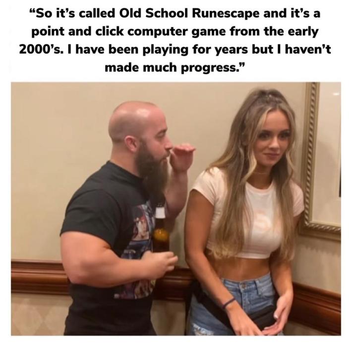 Many will recognize the original Bro Explaining meme, which pairs captions with a photograph of a man in an Astros t-shirt speaking to a visibly bored blonde woman in a sports arena, his hand grasping the back of her neck.