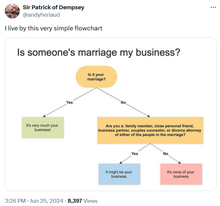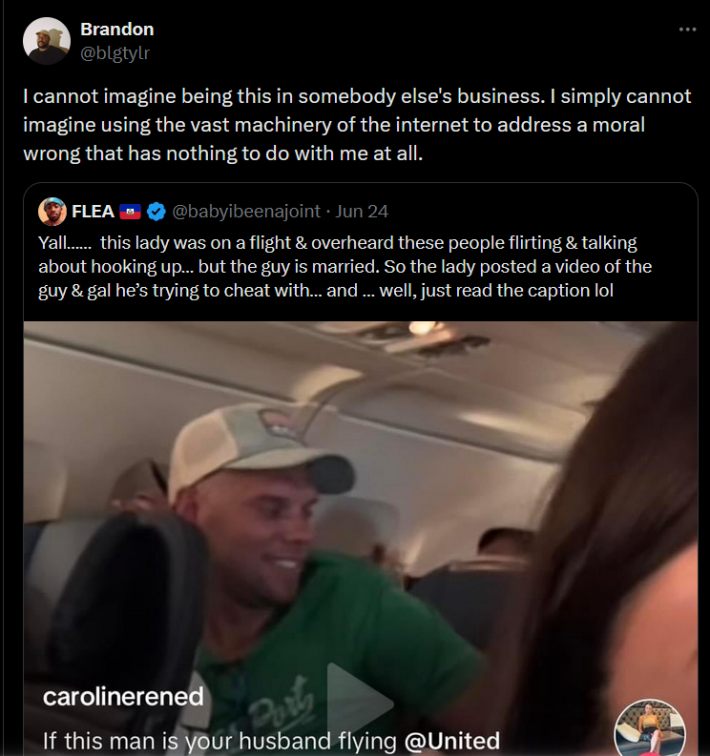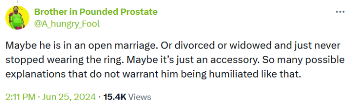 On Twitter, more cautious users have pointed out that not everyone who wears a wedding ring is actually married, and sometimes married couples have an understanding. In a tweet posted on June 25, user @blgtylr criticized the trend of hunting down alleged cheaters and suggested that they need to mind their own business.