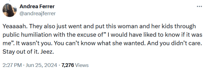 Many commenters agreed with his sentiments and went on to make the point that Stacy may not have been cheating on anybody.