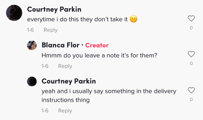 "Yeah, and I usually say something in the delivery instructions thing," they wrote.