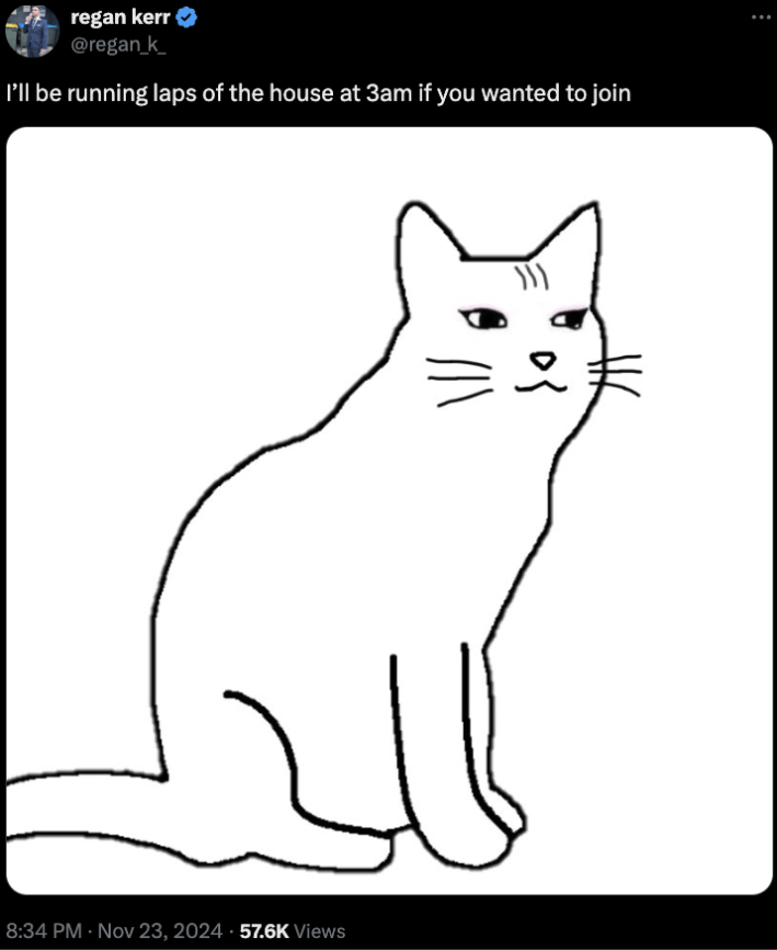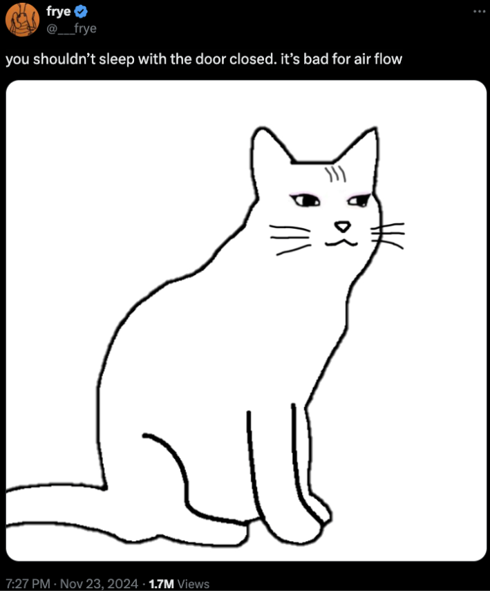 The Catjak first appeared on November 23, 2024, on X.com via the account @___frye with a caption reading, "you shouldn’t sleep with the door closed. it’s bad for air flow."