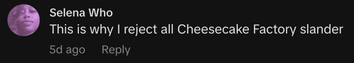 “im convinced this was actually an ad bc i want cheesecake factory so badly now.”