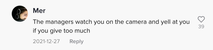 "I used to work there, they post a paper every week of portions used vs expected profit, you do get disciplined for poor percentages," user @rigadoons said.