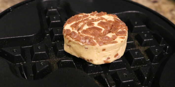 Due to Texas’ unfortunate shape, fitting several cinnamon rolls in my maker proved to be challenging, and I ended up having to make my cinnamon roll waffles one-by-one. (Some people can fit up to four rolls in their waffle maker at a time). I then let them cook for 1 minute each. Two minutes was far too long and resulted in burnt waffles.