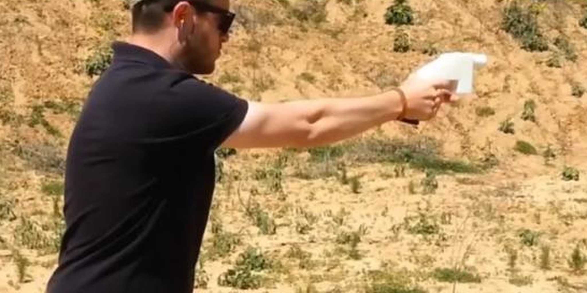 On Sunday, Wilson and the rest of his team at nonprofit Defense Distributed showed off the gun to Forbes' Andy Greenberg, firing it by yanking a string attached to the trigger. Later that day, the group released a second video, this time showing Wilson, donning a baseball cap and sunglasses, firing the weapon at a dusty gun range near Austin, Texas.