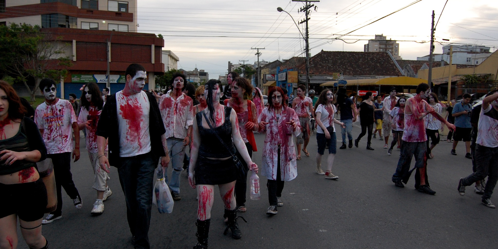 Initial videos show a black sedan speed through a group of conventiongoers—many dressed as zombies for the annual Zombie Walk—knocking down at least two, a man and an elderly woman. The car then speeds off.