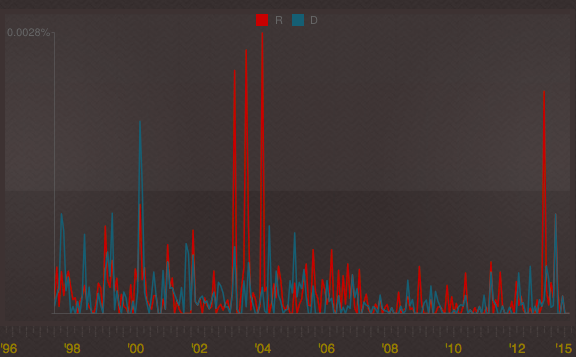 But it’s not always easy to quantify just how eager Congress is to jump the Hitler gun. Thanks to a project from the nonprofit Sunlight Foundation called Capitol Words, visitors can search for and visualize any word or phrase to see how often it’s appeared in the official Congressional Record.