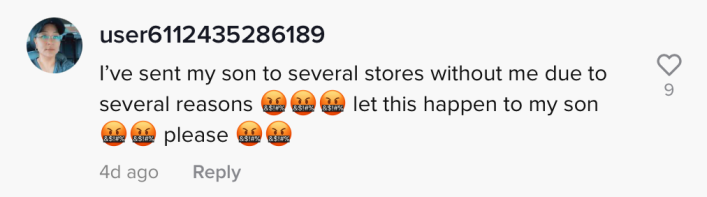 "I've sent my son to several stores without me due to multiple reasons." they wrote. "Let this happen to my son, please."