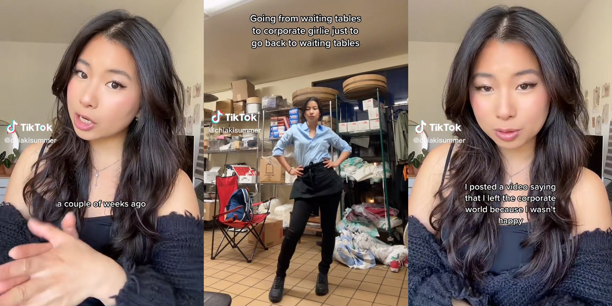 TikToker Chiaki (@chiakisummer) experienced a secession of job changes herself in the past year. In a viral video with over 285,000 views as of Monday, Chiaki models her waitressing outfit as she lip-syncs the beginning to Bobby Caldwell's "What You Won't Do For Love": "I guess you've wondered where I've been."