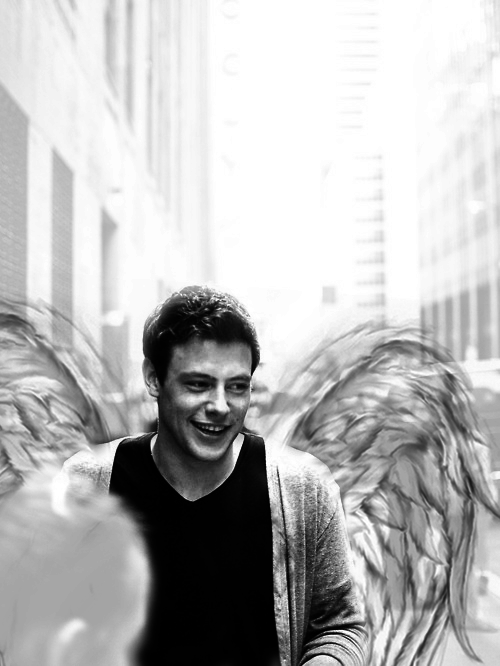 Another trend among grieving Gleeks involves drawing wings onto photos of Monteith, and other variations on the theme of the actor ascending to heaven.
