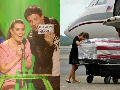 A photo of a woman weeping over a coffin draped in a U.S. flag has been circulating throughout the Glee fandom for the past day on Tumblr. Many fans seem to believe the woman in the picture is Lea Michele, the Glee actress who had been dating her Monteith for more than a year. Michele’s character, Rachel, was Finn’s longstanding on-again, off-again girlfriend on the show.