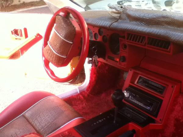 The interior is almost as garish. The blast of blood red may be hard on the eyes, but that's not even the worst aspect: There's an ALLIGATOR on the dash.