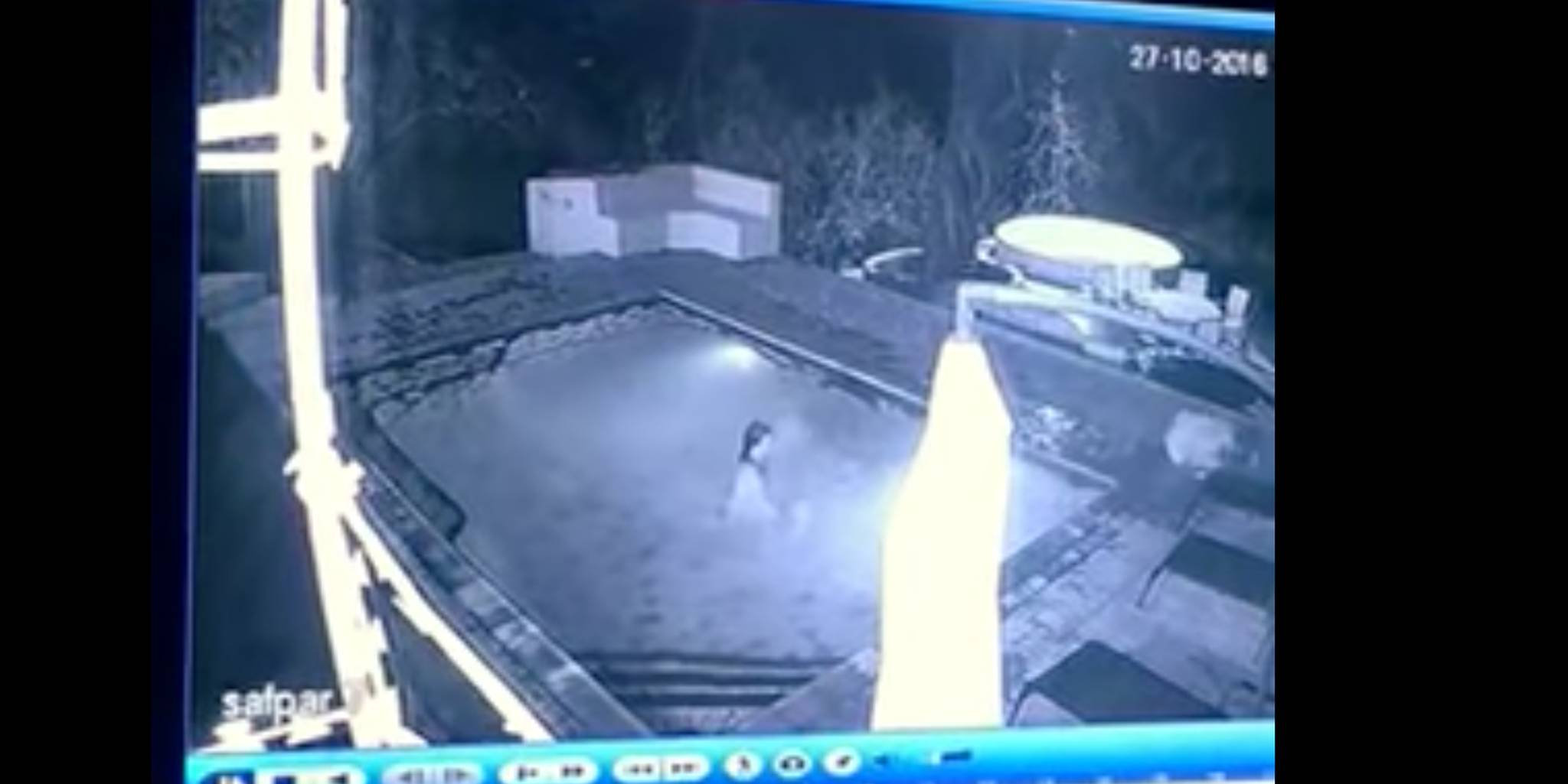 In a video timestamped Oct. 27, a Nile crocodile can be seen slithering into a pool at a private residence in Kariba, Zimbabwe. Two people splash furiously as they escape the pool. The woman appears to suffer a bite on her arm.