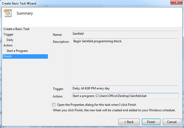 We’re almost done. Now we just have to tell the computer when to play each show, and that will depend on your individual schedule. Personally, I like having Seinfeld playing right as I get done with work and then catching some Futurama later in the evening if I feel like it, so that’s how I scheduled my programming.