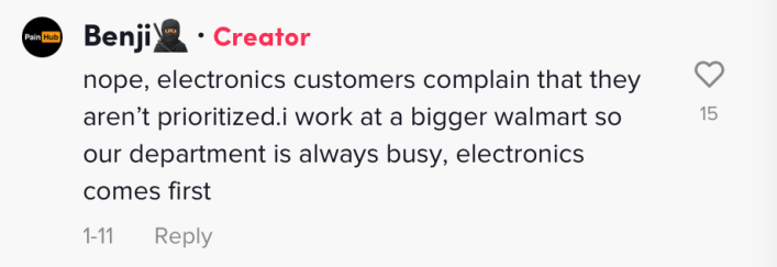 Regarding his own store, @Benji.2x shared in a comment that he prioritizes electronics department customers.