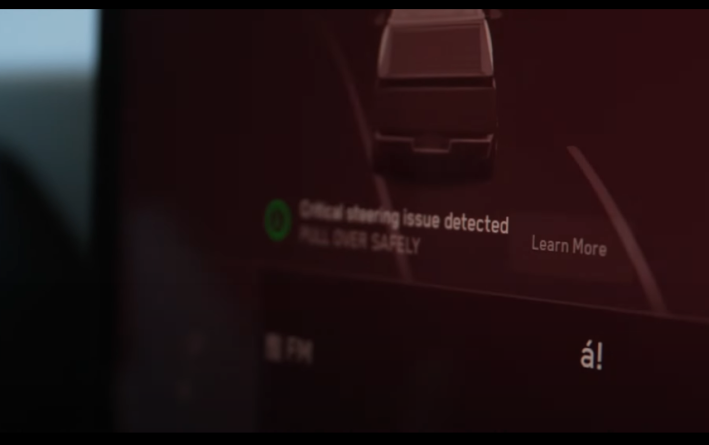 After putting the car into fast mode and turning right out of the dealer parking lot, a red warning bar on the dashboard reading “pull over safely” started flashing along with an emergency beep.